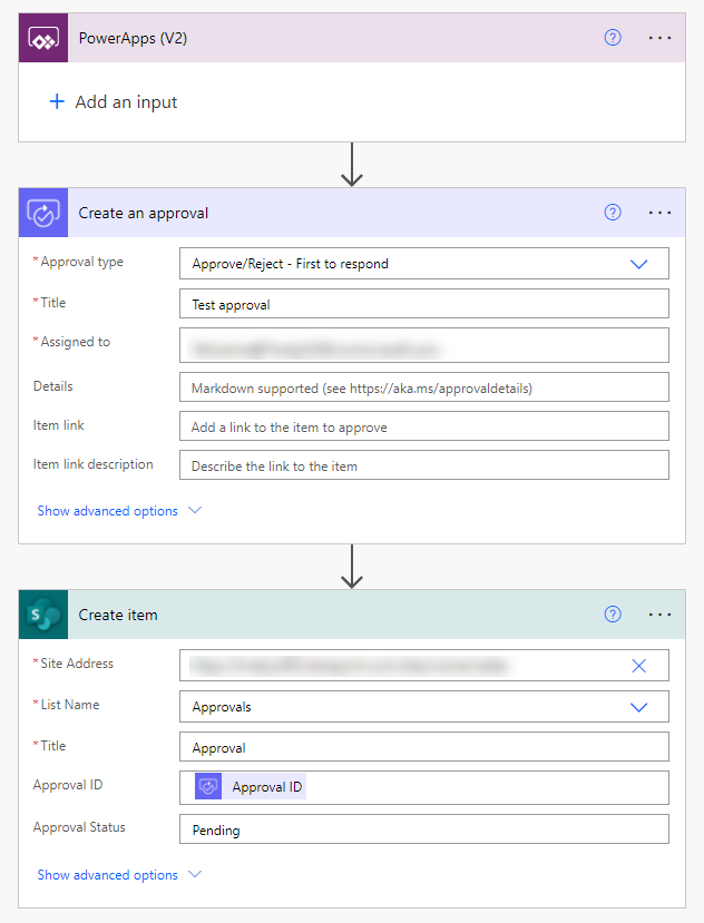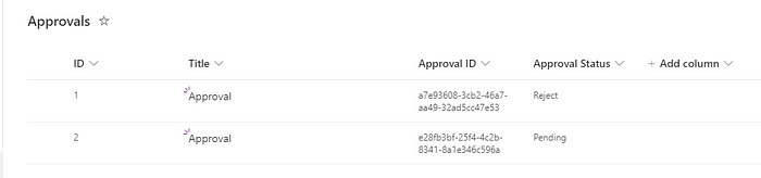 Let’s look at the solution in more detail. In the scenario below, I’m using a SharePoint list as my storage for the approvals. All I really care about is the Approval ID.